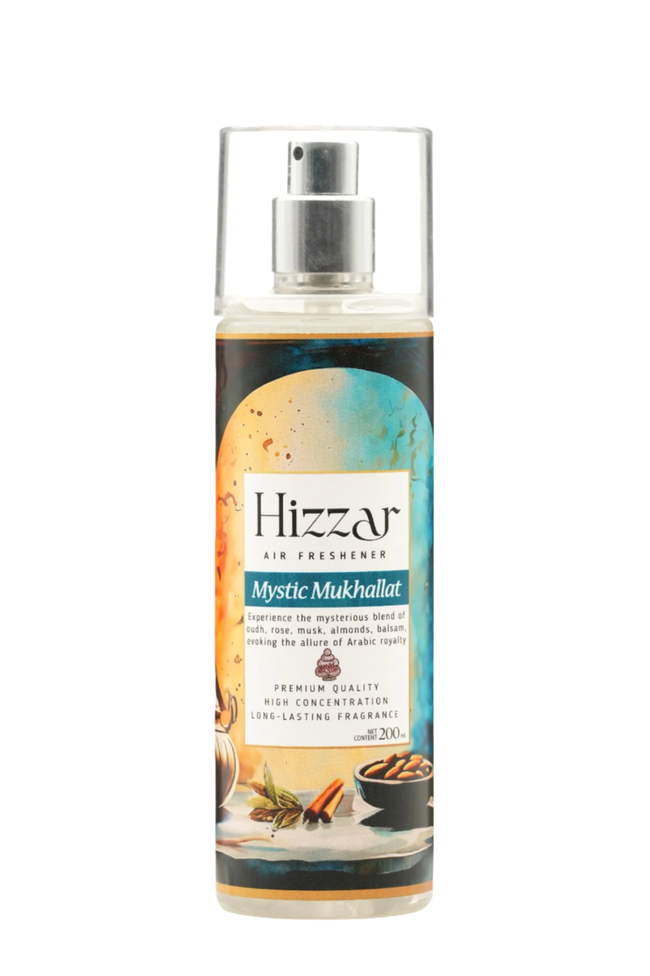 "Immerse your space in the captivating aroma of Mystic Mukhallat, our premium Hizzar's oil-based room sprays. This enchanting fragrance combines exotic floral notes with rich, woody undertones, evoking a sense of mystery and luxury. Perfect for use in ultrasonic and reed diffusers, it fills any room with an air of elegance and timeless allure."