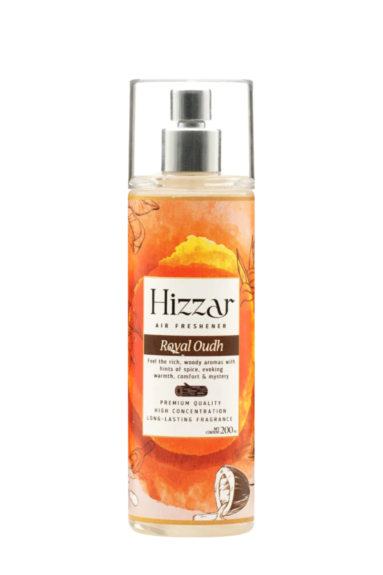 "Indulge your space in the rich, opulent scent of Royal Oudh, our advance Hizzar's oil-based room sprays. This luxurious fragrance blends the deep, smoky notes of oudh with subtle hints of spice, creating an aura of sophistication and warmth. Ideal for ultrasonic and reed diffusers, it envelops any room in a regal and captivating ambiance, perfect for those who appreciate timeless elegance."